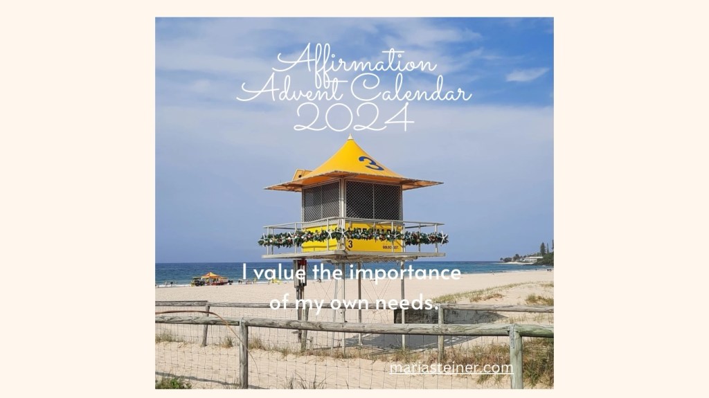 14th December December 14, 2024December 13, 2024 ~ premaria ~ Leave a comment I value the importance of my own needs. Share this: Click to share on X (Opens in new window) X Click to share on Facebook (Opens in new window) Facebook Click to email a link to a friend (Opens in new window) Email Click to share on Pinterest (Opens in new window) Pinterest Like Loading...
